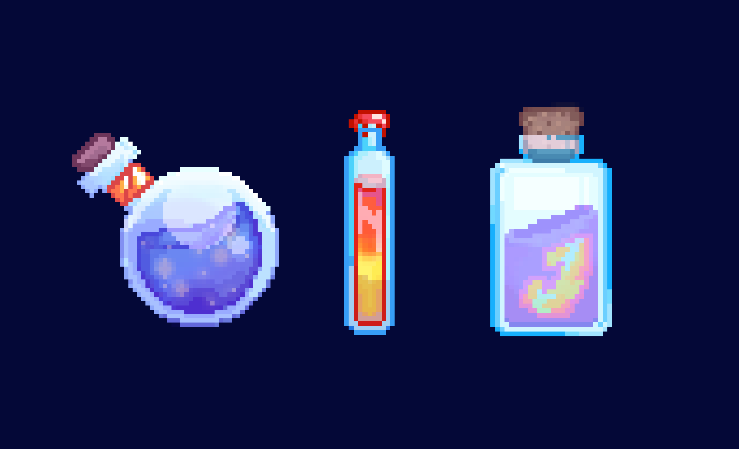 3 potions based off Resonance (I am NOT very used to pixel art so ignore the rectangle one it's not as good) :PP