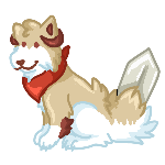 [ID: a pixel art drawing of HimejoshiHeart's oc duskie the ruptour]
